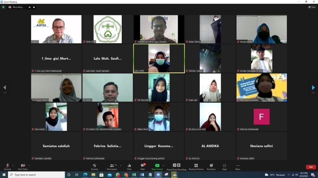 Visitasi (daring/online) Program Studi S1 Ilmu Gizi UNU NTB oleh Asosiasi Institusi Pendidikan Tinggi Gizi Indonesia (AIPGI).