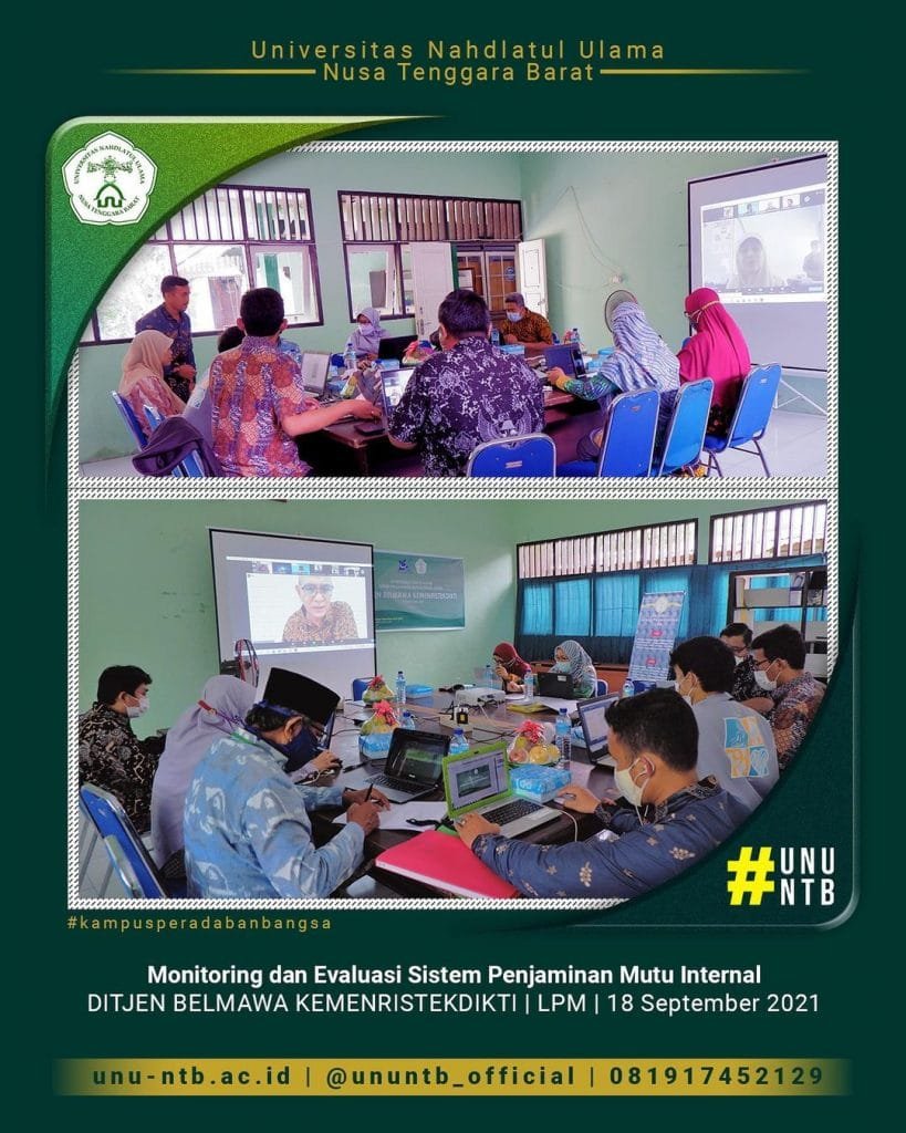 LPM UNU NTB melaksanakan Monitoring & Evaluasi Sistem Penjaminan Mutu Internal (Monev SPMI) secara daring & luring bersama Ditjen Belmawa Kementistekdikti