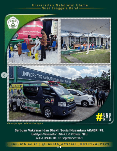 Hari ini UNU NTB menggelar kegiatan vaksinasi untuk 1000 orang mahasiswa. Kegiatan yg ditujukan untuk menyegerakan usaha bersama menuju zona hijau di masa pandemi ini di dukung penuh oleh Batalyon Vaksinator TNI-POLRI Provinsi NTB. Semoga ini bisa menjadi jalan bagi hadirnya rangkaian ragam rona berkah kesehatan bagi seluruh civitas akademika UNU NTB. 🙂🙏 ————————————————— 📸 […]