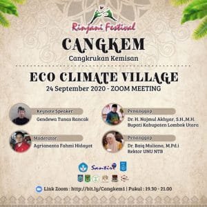 UNU NTB berkesempatan untuk bekerjsama dengan Dirjen Kemendikbud, Santiri, IKA ITS NUSRA, Pemerintah Provinsi NTB, BPPI, Pemda KLU dalam acara CANGKEM (Cangkrukan Kemisan) untuk berdiskusi santai mengenai lingkungan